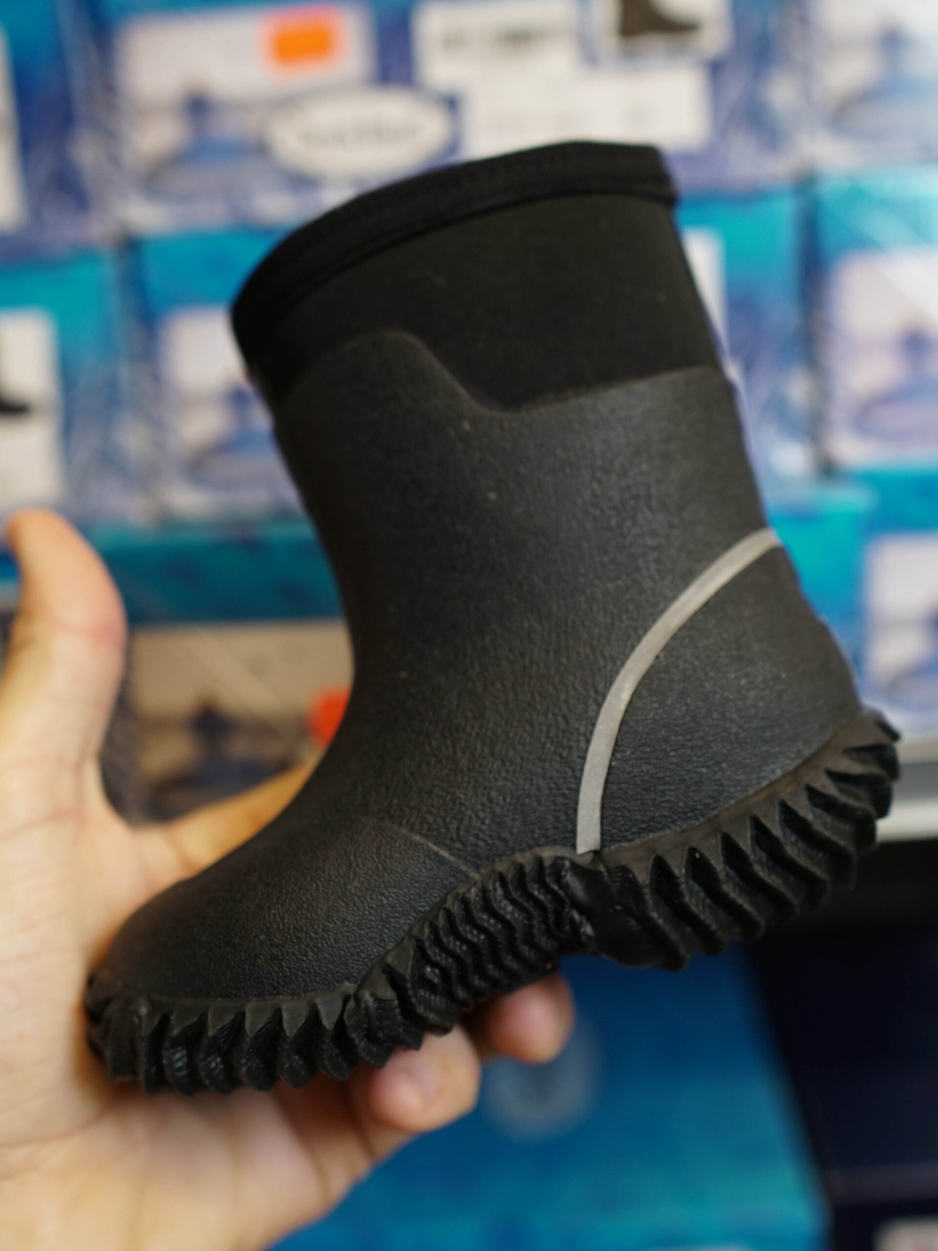 Dock Boot sin ytterdel er av neopren som er 100% vanntett og både støtdempende og varmeisolerende, Neopren er det samme materialet som blir benyttet i både våt -og tørrdrakter.