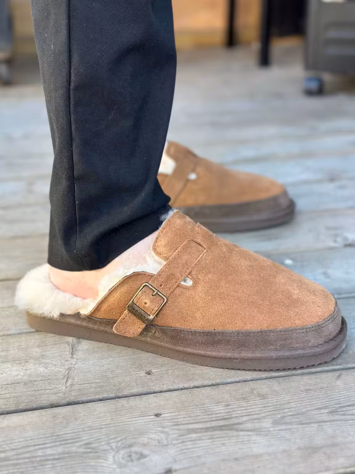 Oppdag eksepsjonell komfort med Gregers herre tøfler i ekte saueskinn.